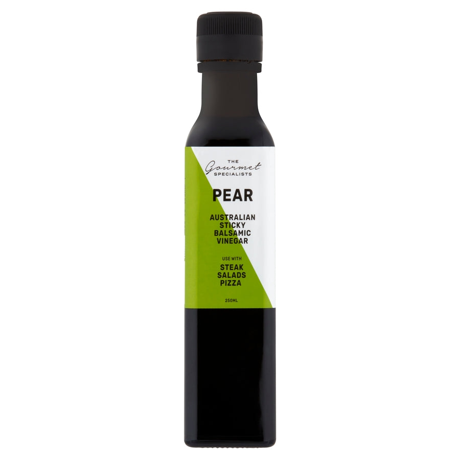 The Gourmet Specialists Pear Sticky Balsamic Vinegar is a sweet, delicious balsamic which is great to use with red meats, salads, desserts and cheese.